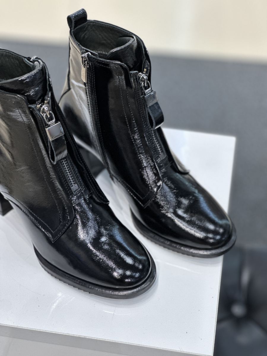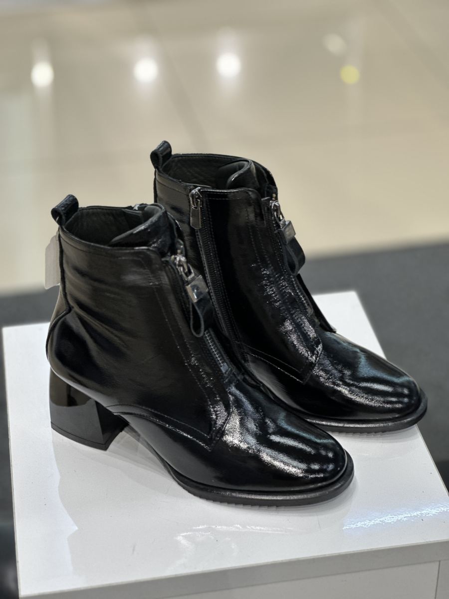 Ботильоны из натуральной лаковой черной кожи на удобном каблуке. Производитель Турция